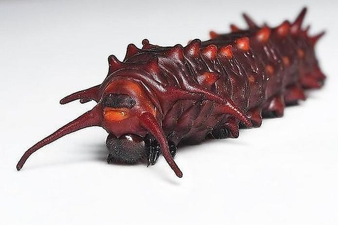 А эта гусеница из инопланетного племени обмундирована ядовитыми лезвиями, которые расположены на защитном телесном покрытии.